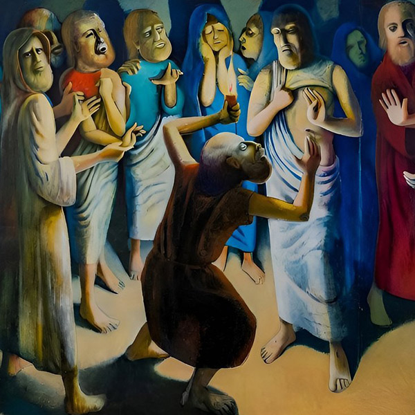 Tommaso, uno dei Dodici, chiamato Dìdimo, non era con loro quando venne Gesù. Gli dicevano gli altri discepoli: «Abbiamo visto il Signore!». Ma egli disse loro: «Se non vedo nelle sue mani il segno dei chiodi e non metto il mio dito nel segno dei chiodi e non metto la mia mano nel suo fianco, io non credo».
